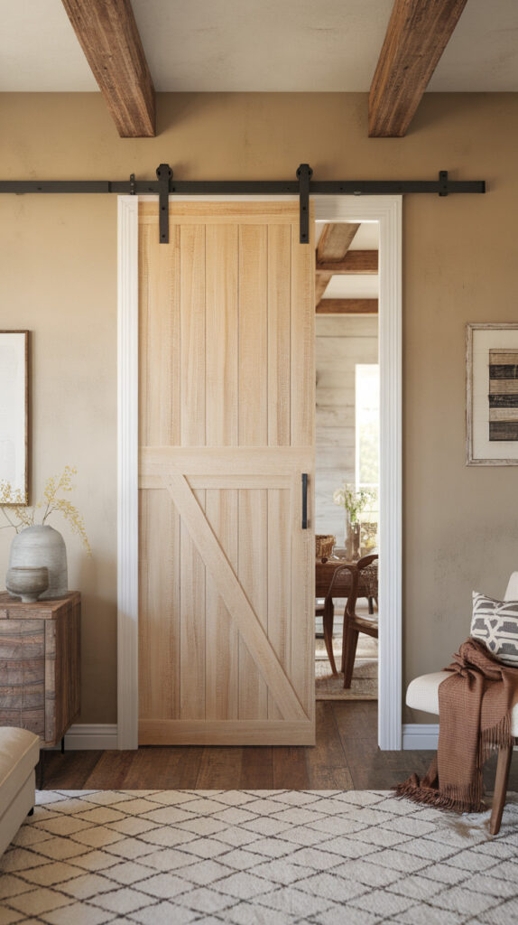 Farmhouse design depends on layers, and shiplap creates a permanent layer that doesn’t require extra décor. It also adds subtle shadow lines that make the wall feel richer.