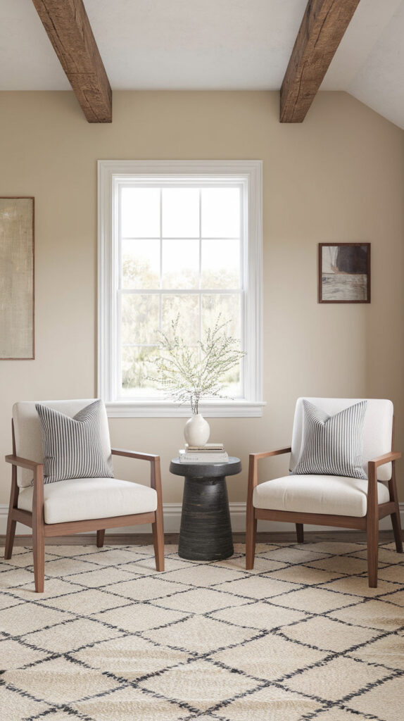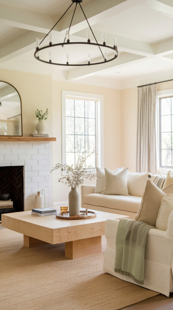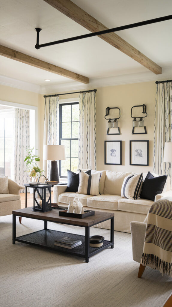 Another common issue is going too beige without contrast. If everything is cream, tan, and light wood, the room can look washed out instead of warm, so you need a few matte black or darker wood touches to hold it together.