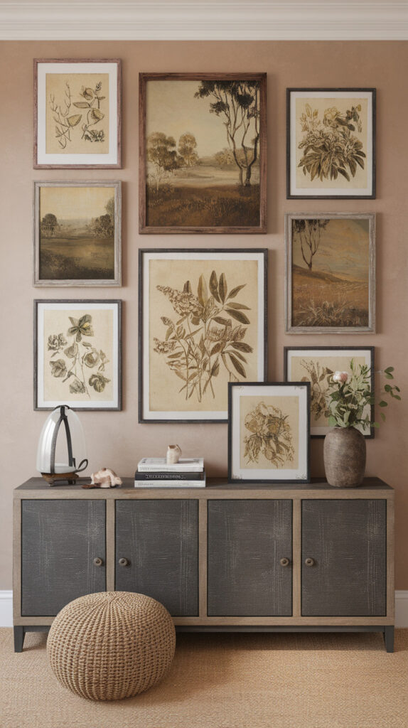 I love gallery walls because they make a room feel like someone actually lives there, not like it came straight from a furniture store showroom.