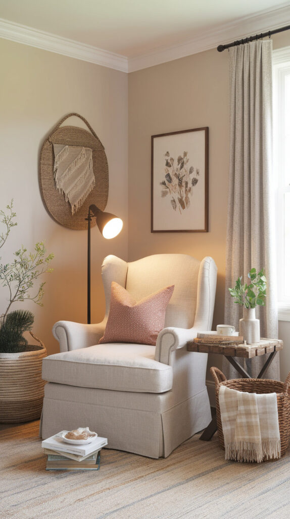 • Add accent colors like muted sage, dusty blue, or warm terracotta