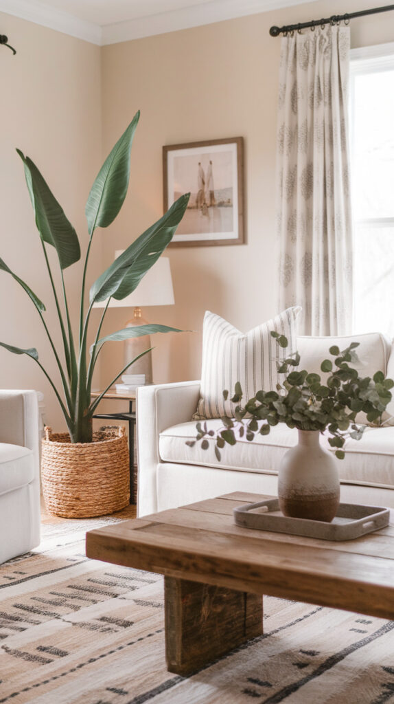Start with one or two big changes like a wood coffee table or a soft rug, and build from there. Once you get the balance right between rustic texture and cozy softness, the whole room starts to feel like a place you actually want to spend time in.