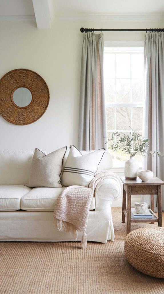 White slipcovers look amazing, but only if the rest of the room supports them. Pair them with warm wood, textured rugs, and natural accessories so the sofa doesn’t feel like it belongs in a sterile showroom.