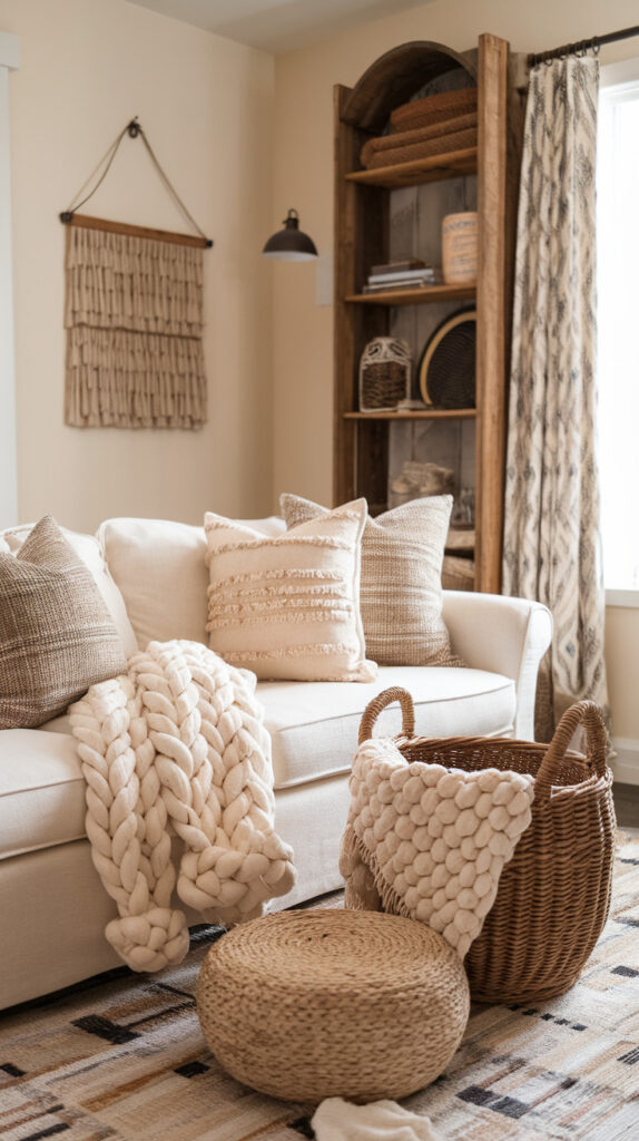 It also adds texture naturally, which is what makes farmhouse spaces feel cozy instead of cold or staged.