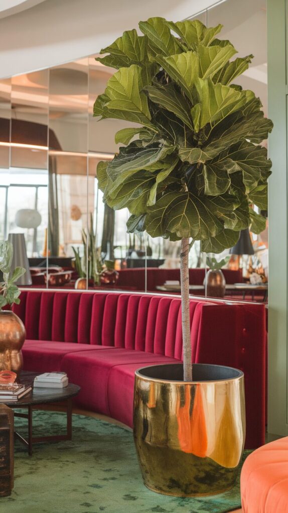 Every formal space needs a touch of life, and sculptural greenery does it best. Think fiddle leaf figs, olive trees, or even a tall palm in a decorative planter.