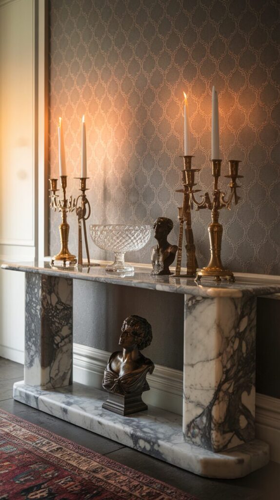 Why not lean into timeless accessories? Busts, candlesticks, crystal bowls, and heirloom-style décor never go out of fashion.
