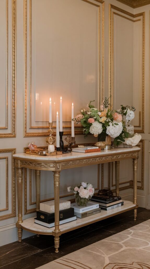 It’s also an easy spot to switch things up seasonally — think festive décor in winter, fresh blooms in spring, and elegant accessories year-round.