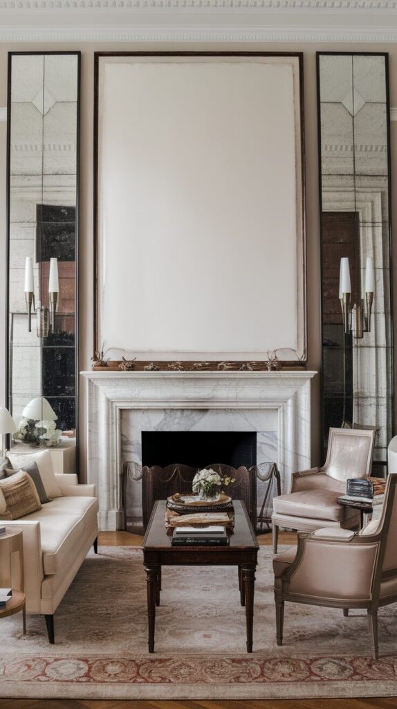 Mirrors, on the other hand, do double duty. They not only add sparkle but also bounce natural light around, making your room look bigger and brighter. And let’s be honest — nothing feels more luxe than a tall, gold-framed mirror leaning against the wall.