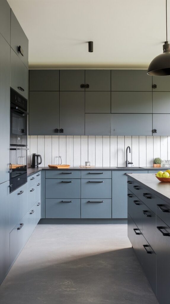Matte grey cabinets feel sleek, modern, and surprisingly forgiving. I appreciate how they resist glare and fingerprints better than glossy finishes. This choice works well in homes that prioritize subtle elegance over shine.