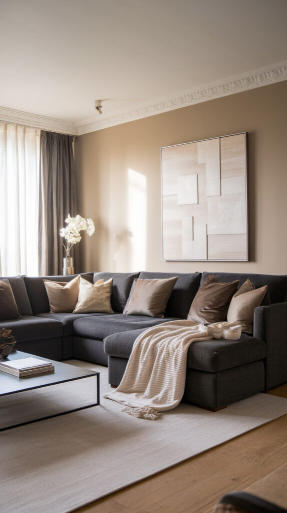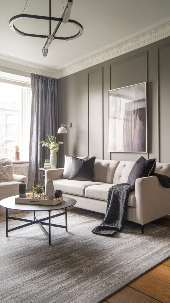 Mix light greys with charcoal accents, then throw in a warm greige or smoky taupe to soften everything. I’ve tried the “one grey only” approach before, and honestly it felt like I was living inside a printer.
