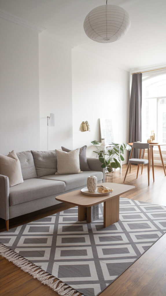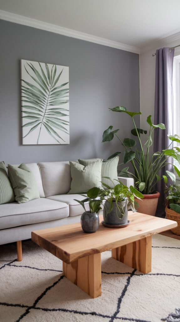 If your grey is cool-toned, go for warmer woods like honey oak or walnut. If your grey leans warm, you can use lighter woods like birch or pine. Avoid glossy orange wood finishes unless you want your living room to look like 2004.