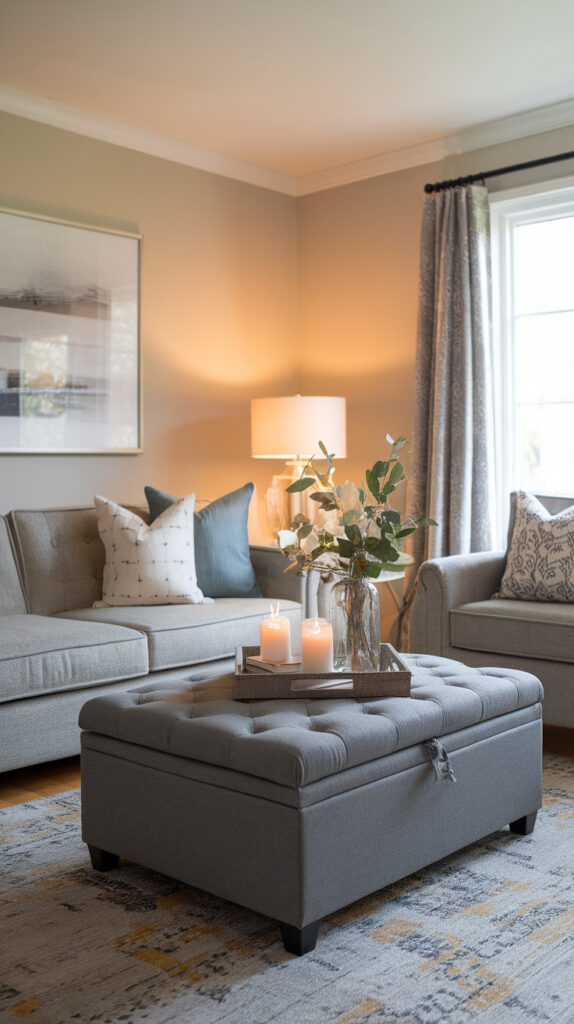 16. Use Grey Storage Ottomans for Style and Function