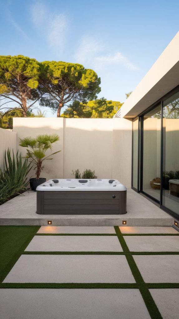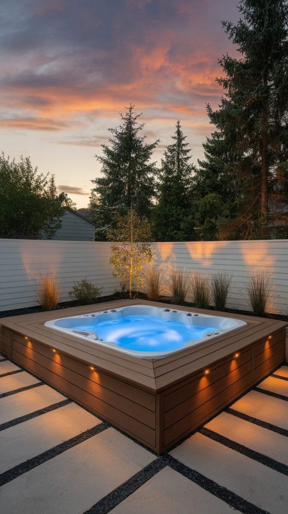 A sunken design also helps the hot tub blend with modern landscaping. Wood decking, stone pavers, or concrete slabs frame it beautifully and keep the focus on relaxation.