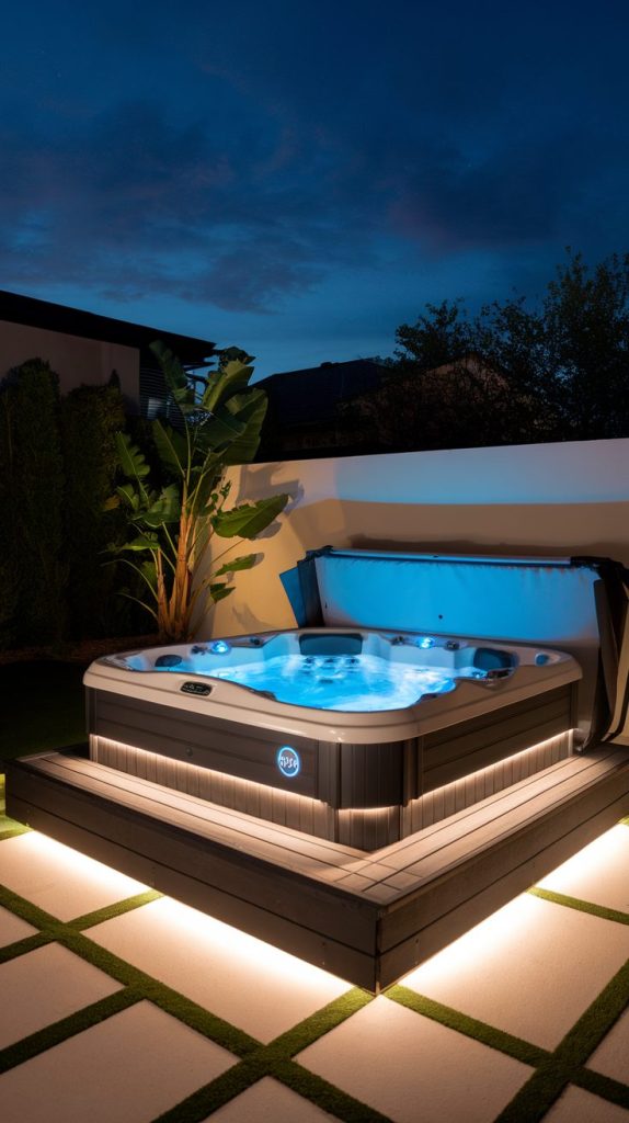 10. Hot Tub with Smart Lighting and Tech Features