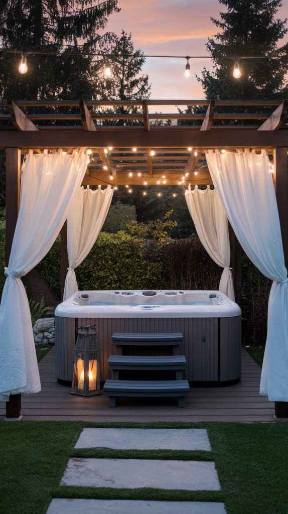 A pergola over a hot tub changes everything, and I say that from experience. It gives shade during the day and a sense of privacy without fully closing the space.