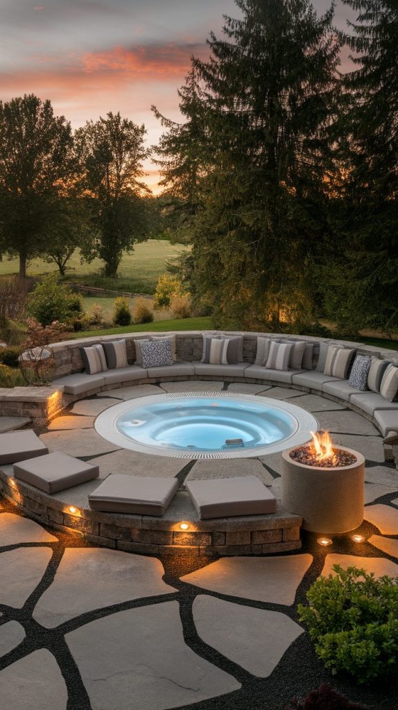 I always say the hot tub should feel like part of a hangout zone, not a lonely corner. Built-in seating around the tub invites conversation and keeps guests close.