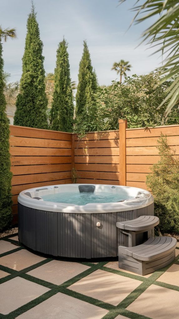 4. Privacy-Focused Hot Tub with Screens or Fencing