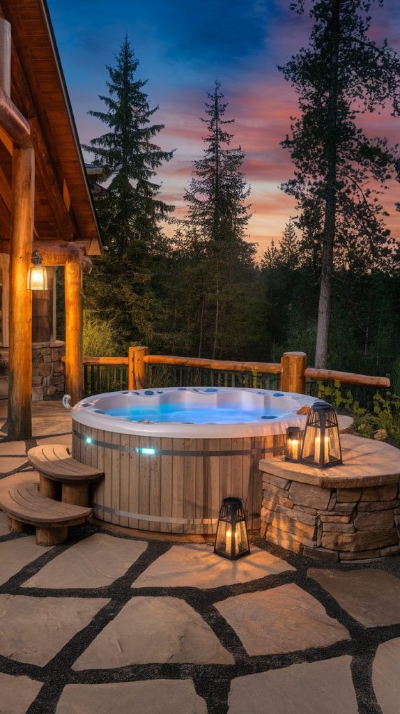 9. Rustic Hot Tub with Natural Materials