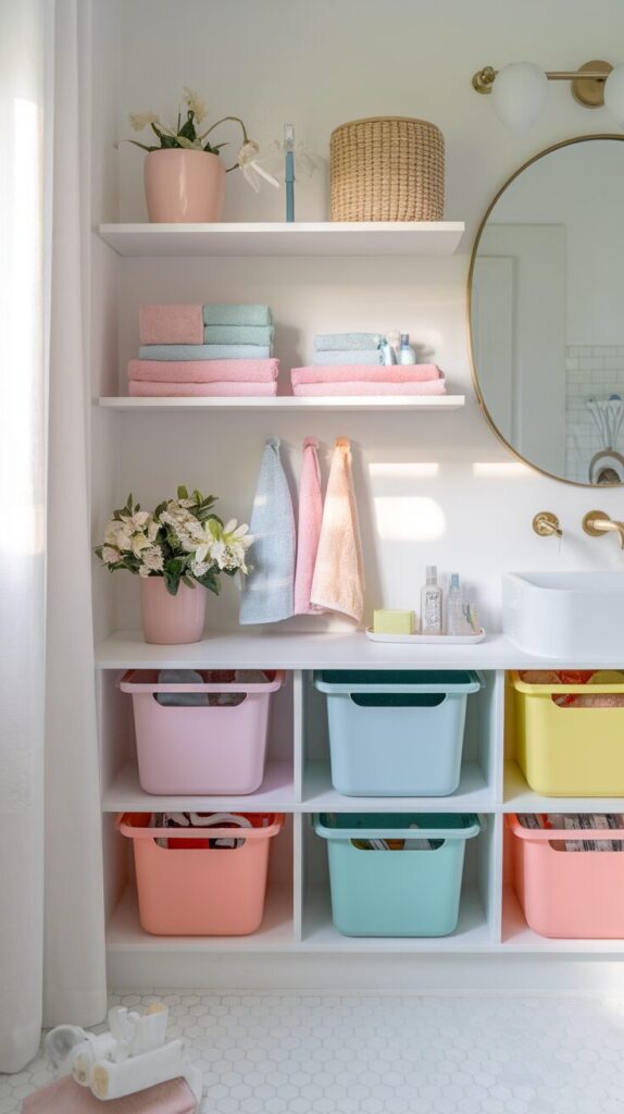 Kids lose things like it’s a sport, especially before school. Toothbrushes vanish, hair ties disappear, and everyone blames everyone else. Color-coded storage fixes that mess without turning your bathroom into a toy store.