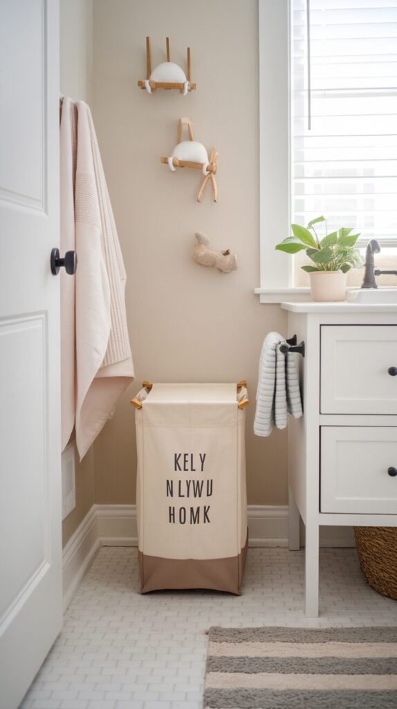 Fabric hampers soften hard surfaces. Avoid plastic lids for wet clothes.