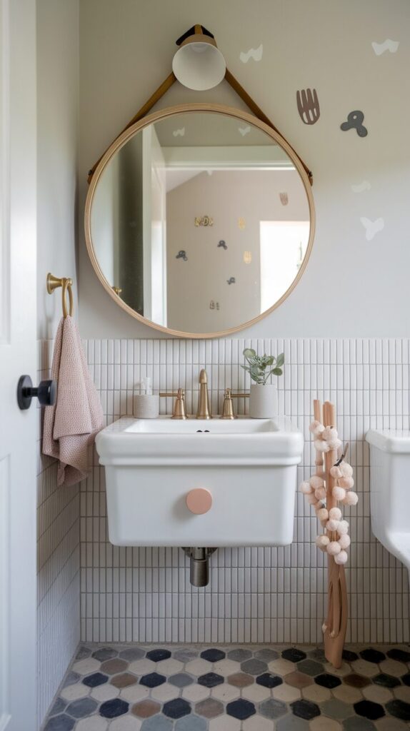 The bathroom never gets enough credit, especially when kids enter the picture. This room deals with toothpaste explosions, wet towels, mysterious floor puddles, and somehow still needs to look cute.