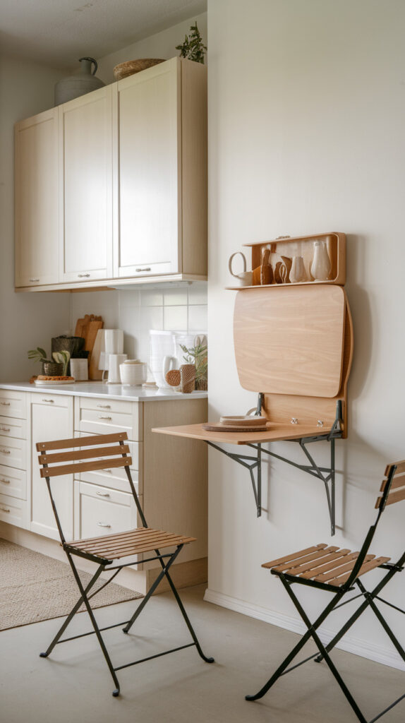 I love this idea because it works as a dining table, prep station, and laptop perch without permanently crowding the room. In one studio setup I tried, folding it down instantly made the kitchen feel twice as open.