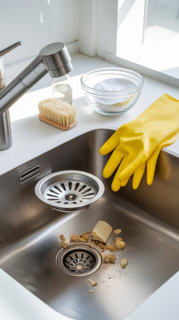 • Remove the sink stopper or drain screen and clear visible debris with gloves, because that top layer often causes half the problem.