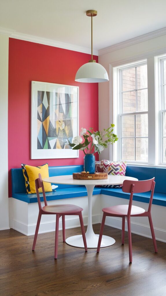 11. Color-Pop Nook That Energizes the Kitchen