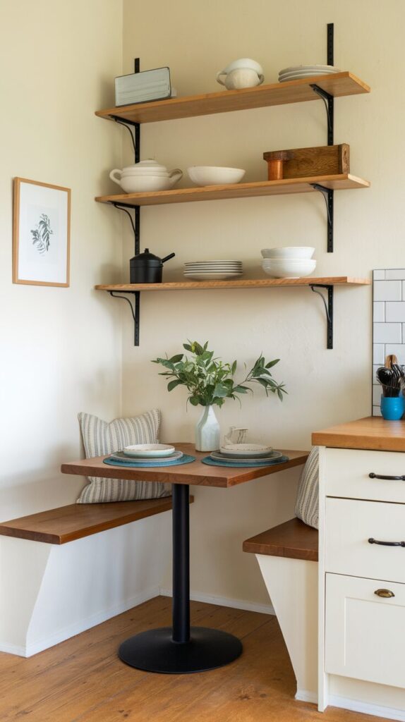 Not every kitchen can handle furniture. A wall-mounted table gives you a nook without stealing space. I appreciate how clean and honest this solution feels.