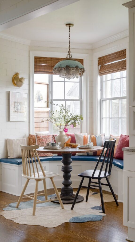 Balance contrast carefully. If your kitchen cabinets feel bold, keep the nook calmer. If the kitchen feels neutral, let the nook introduce personality.