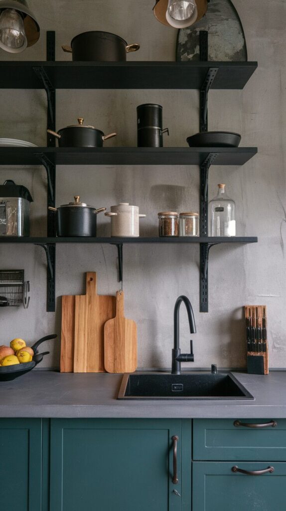 I love floating shelves because they remove visual bulk while still giving you storage. They keep essentials within arm’s reach and make daily cooking smoother, which matters when dinner already feels rushed.