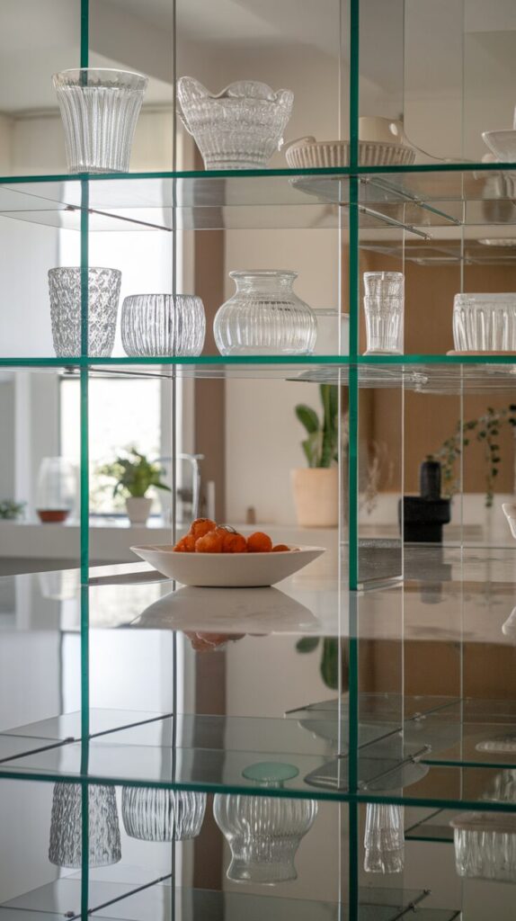 Glass shelves surprised me the first time I used them, and now I recommend them regularly. They create storage without adding visual weight.