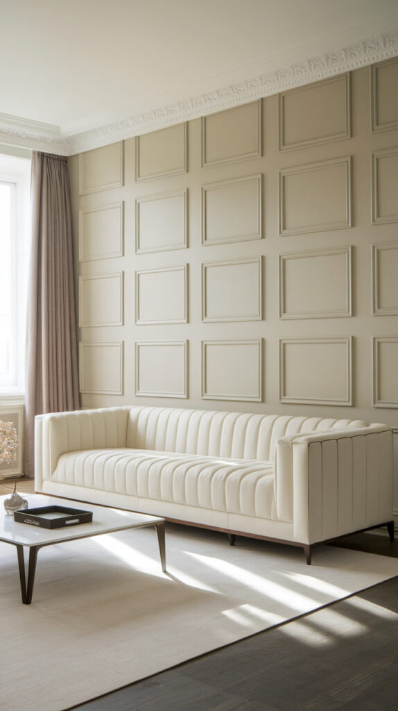 Wall molding sounds fancy, but it’s basically just adding structure to a blank wall so it stops looking like drywall sadness. Even simple rectangular panel molding can make a living room feel upscale.