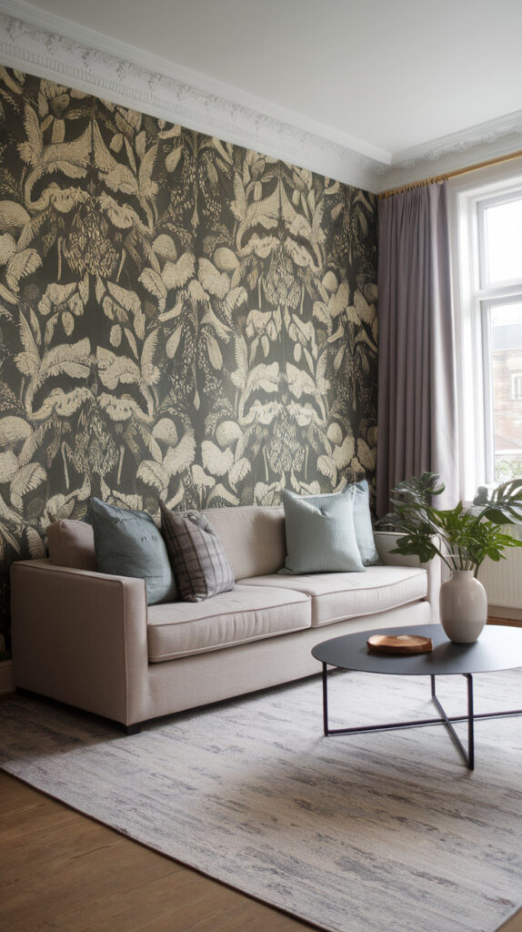 Soft botanical murals look elegant and timeless. Geometric patterns feel modern and bold. Textured wallpaper can add depth without being visually loud.