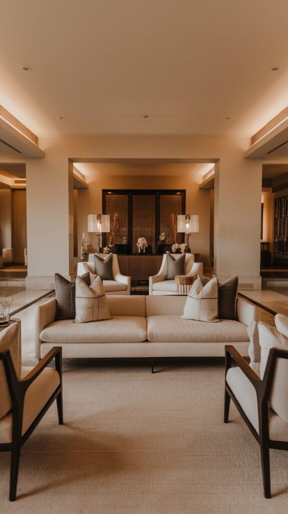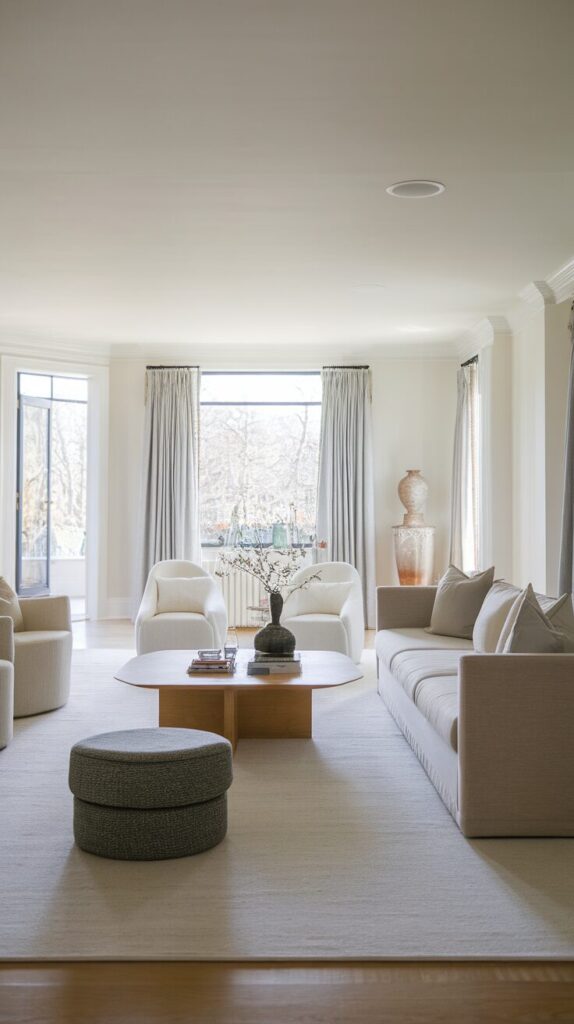 Here’s a design hack that adds instant depth: mix up the heights of your seating. Combine sofas, low chairs, poufs, and stools to create layers. The variation makes the room feel curated and full of dimension.