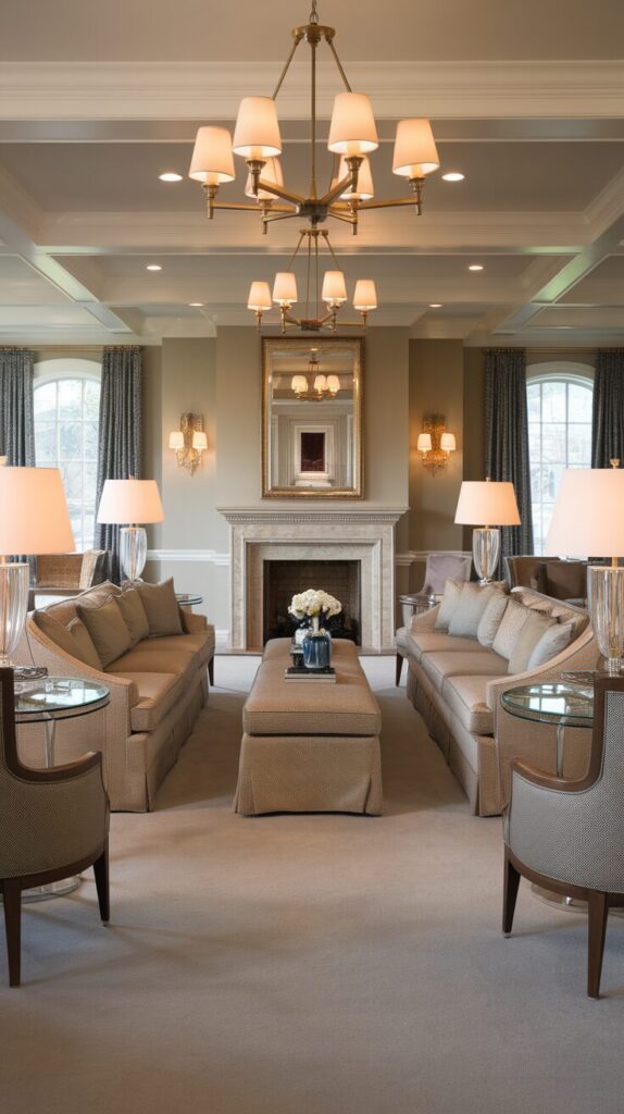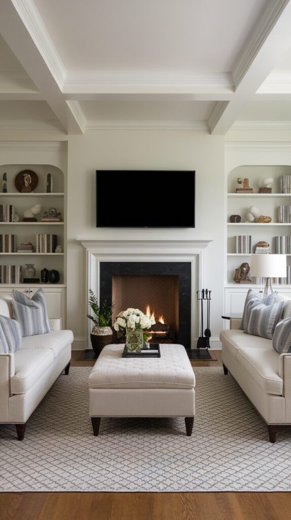 The result feels polished, timeless, and perfect for larger or more formal living rooms. Symmetry never really goes out of style—it’s a tried-and-true formula that always works.