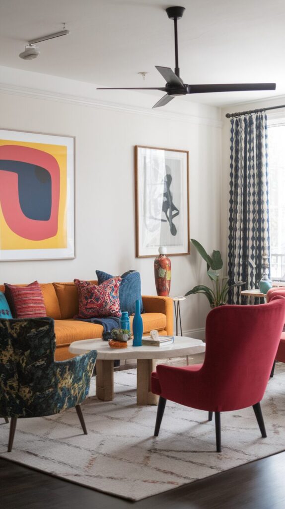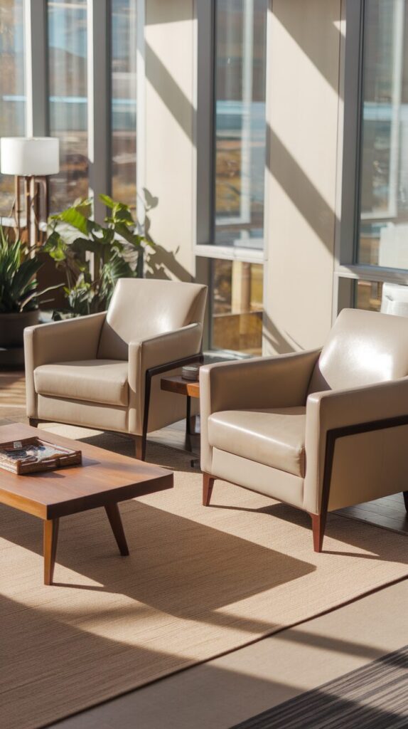 Tired of rigid, boxy layouts? Try angling your armchairs. A diagonal placement instantly adds movement and energy to your space. It’s like saying, “I don’t play by the furniture rules—but I still have style.”