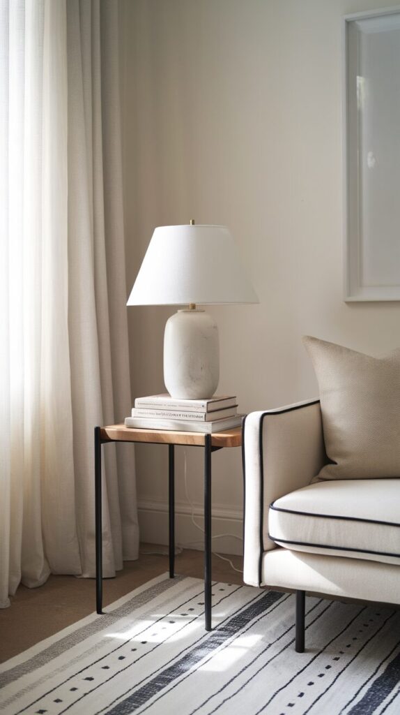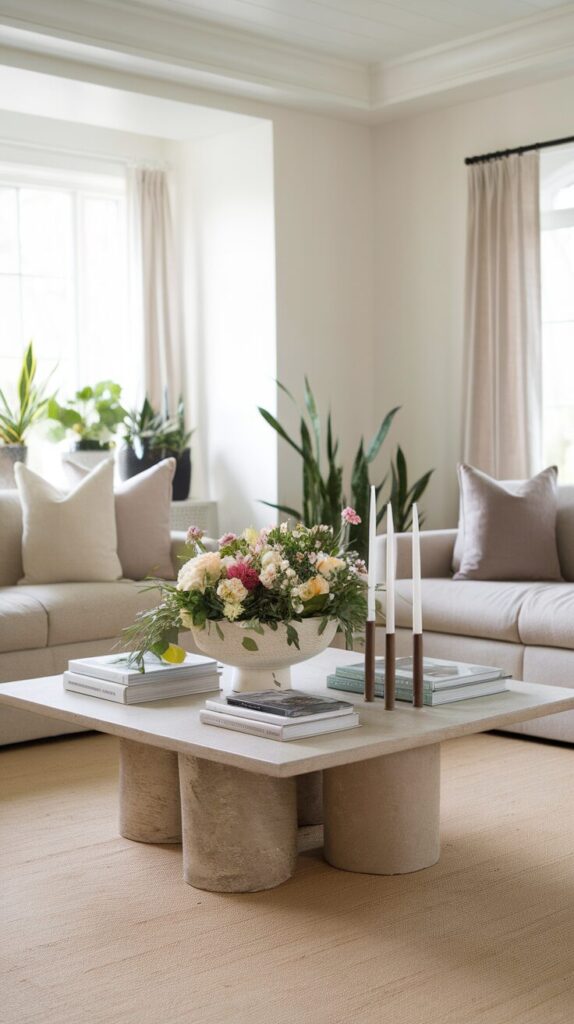 Styling the table itself matters too—think trays, books, candles, or a simple vase of flowers. A well-placed table anchors your seating area and makes the whole space feel put together.