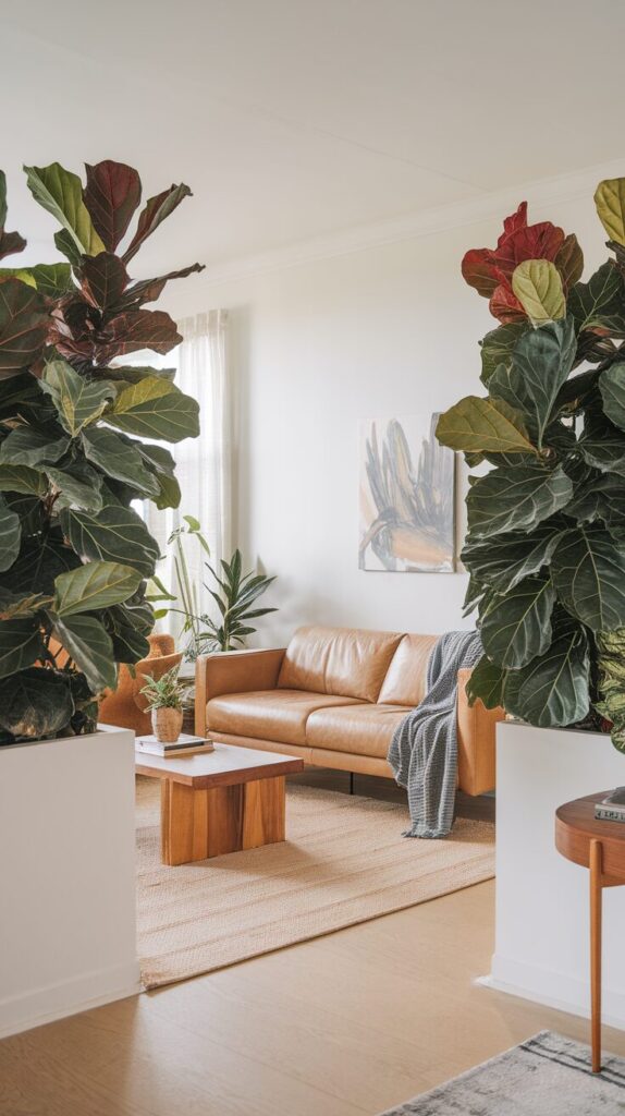 Plants aren’t just pretty—they’re powerful room shapers. Large potted palms, tall fiddle leaf figs, or even a row of smaller plants can act as dividers without blocking light.