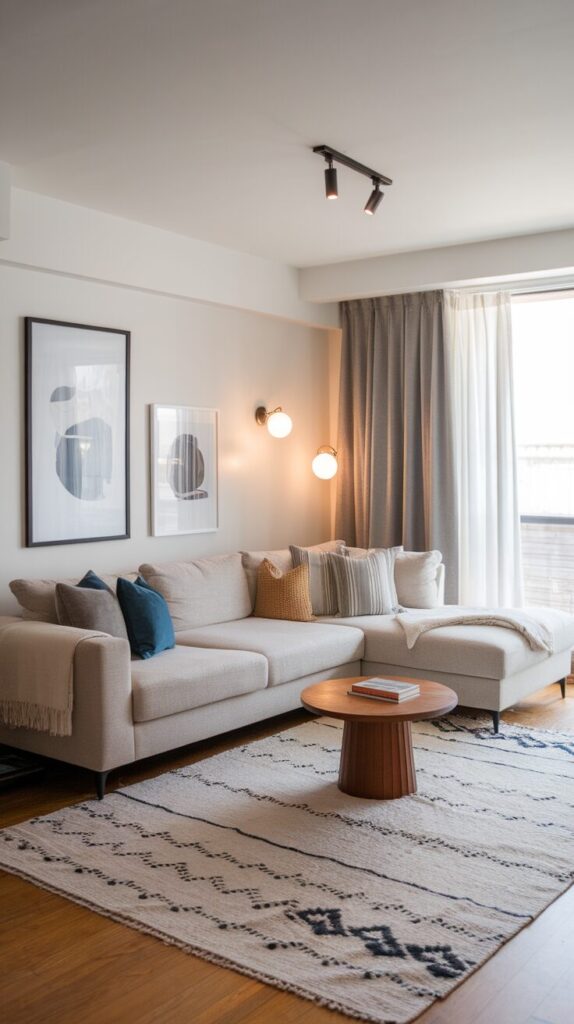 Anchor it with a rug and a central coffee table, and you’ll have a functional, stylish space that feels intentional—without eating up precious square footage.