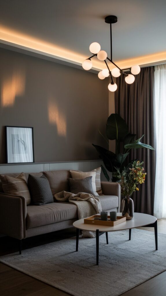 Next, consider furniture placement. Your sofa, coffee table, reading chair, and TV area should each have proper illumination. For example, a floor lamp near a reading chair adds task lighting, while wall sconces near artwork create depth.