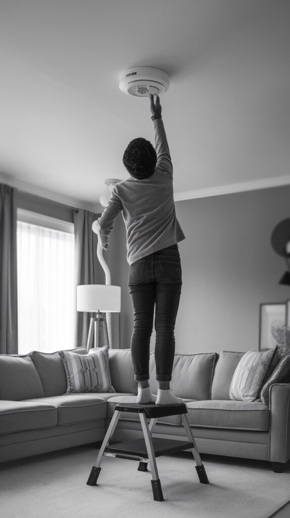 Test smoke detectors once a month and replace batteries at least once a year, or sooner if needed. I like tying this to a monthly living room reset so it never slips.