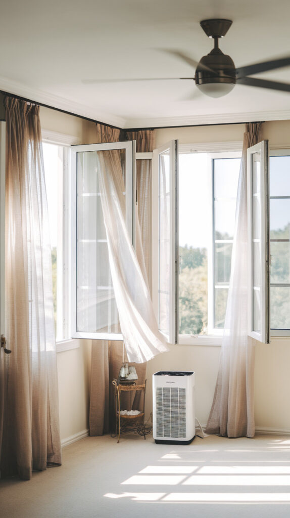 Good ventilation reduces odors, moisture, and airborne dust that settle back onto furniture. It also helps prevent mold and keeps the room from feeling heavy, especially in humid weather.