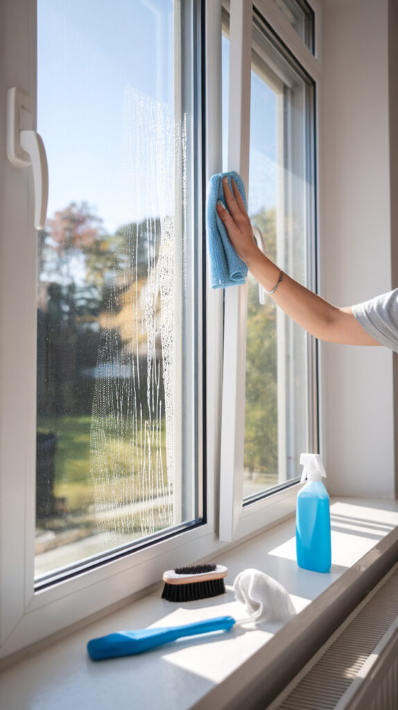Clean windows improve the room’s look right away, but inspection matters even more. Small seal cracks, condensation, or frame damage can lead to mold, wood swelling, and higher energy costs if nobody catches them early.
