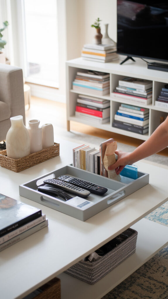 - Use a small tray or basket for daily-use items to prevent random piles.