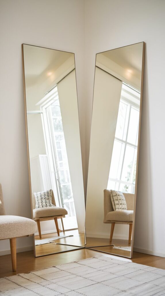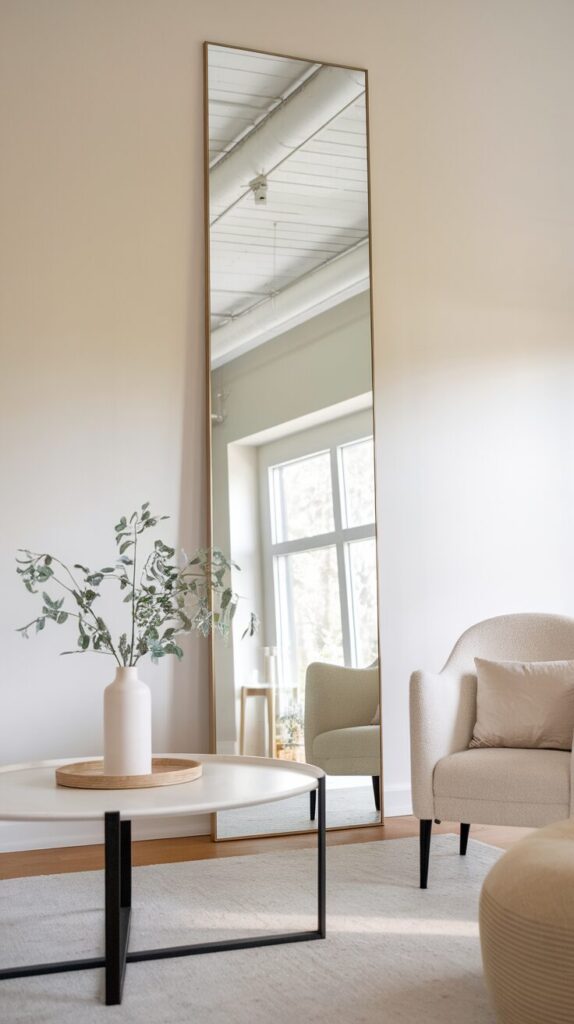 1. Oversized Floor Mirror Leaned Casually Against the Wall