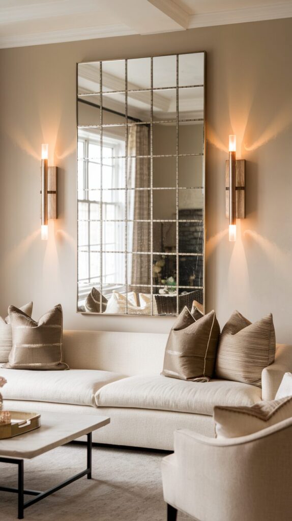 Not every living room has great windows. A window-style mirror fakes the look and boosts light at the same time. I love how it adds structure without renovations.