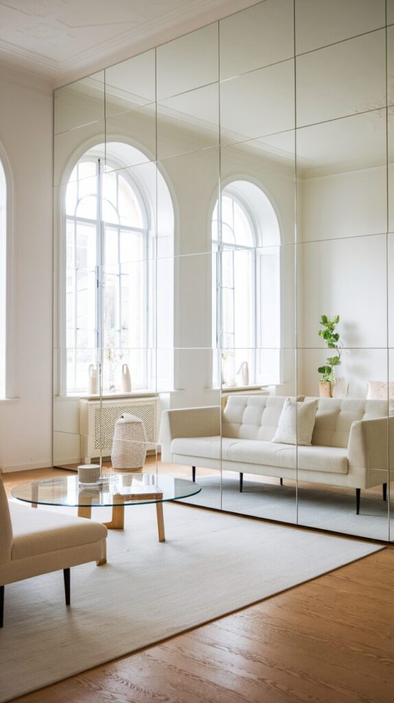 Some living rooms feel dark no matter what you do. A mirrored wall sounds bold, but it solves lighting issues instantly. I resisted this idea until I saw it done right.