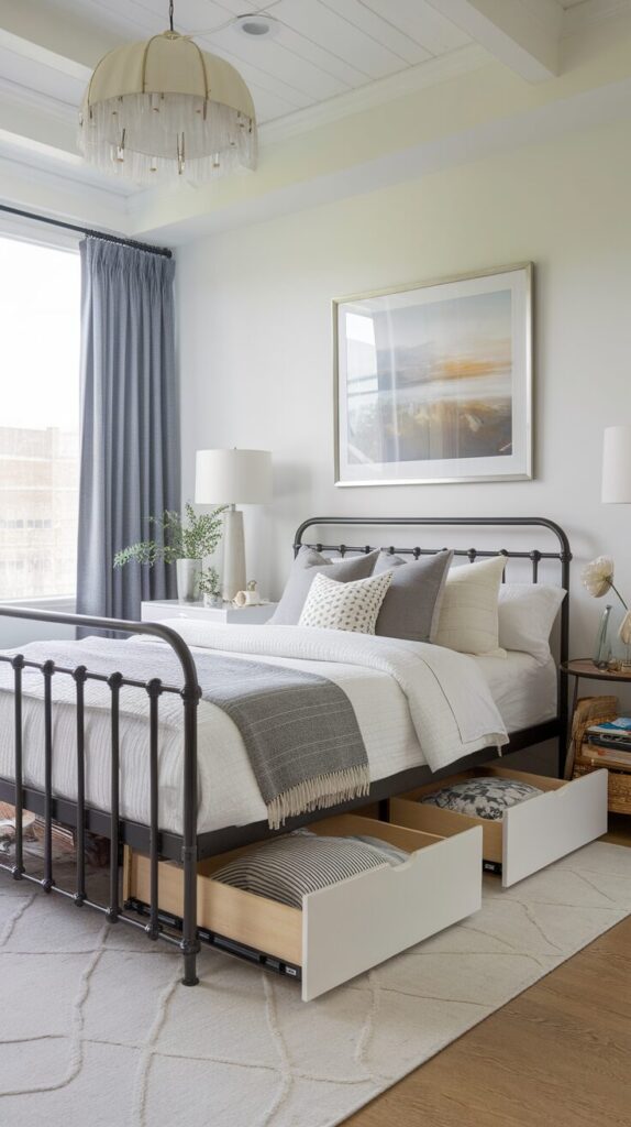 Storage matters more than people admit. Metal frames with drawers or shelves solve real problems. I love furniture that earns its place.