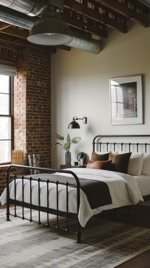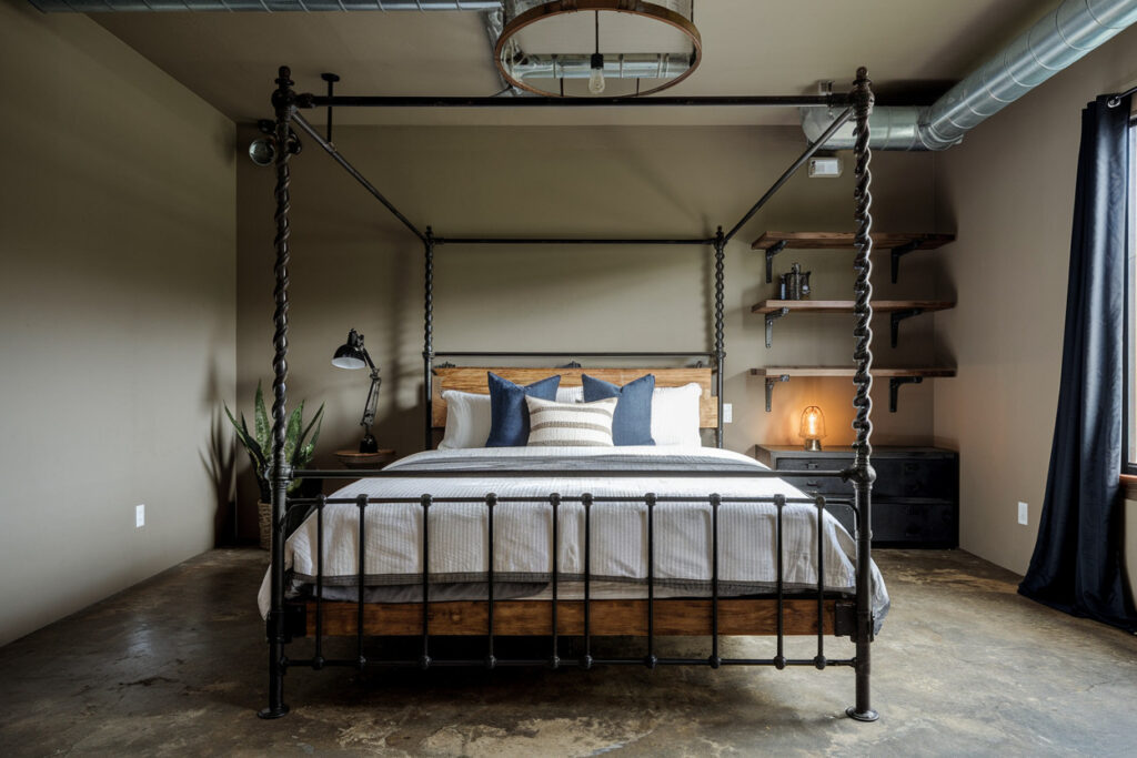 Metal matches exposed materials. The bed feels intentional. Everything aligns.