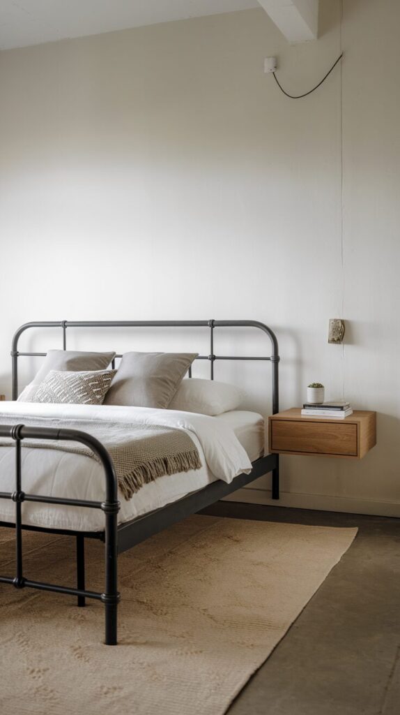 A black metal bed frame can look harsh if you leave it alone, and I learned that the hard way. The moment you pair it with warm wood, the whole room softens and feels intentional. Think cozy, grounded, and grown-up instead of cold and industrial.